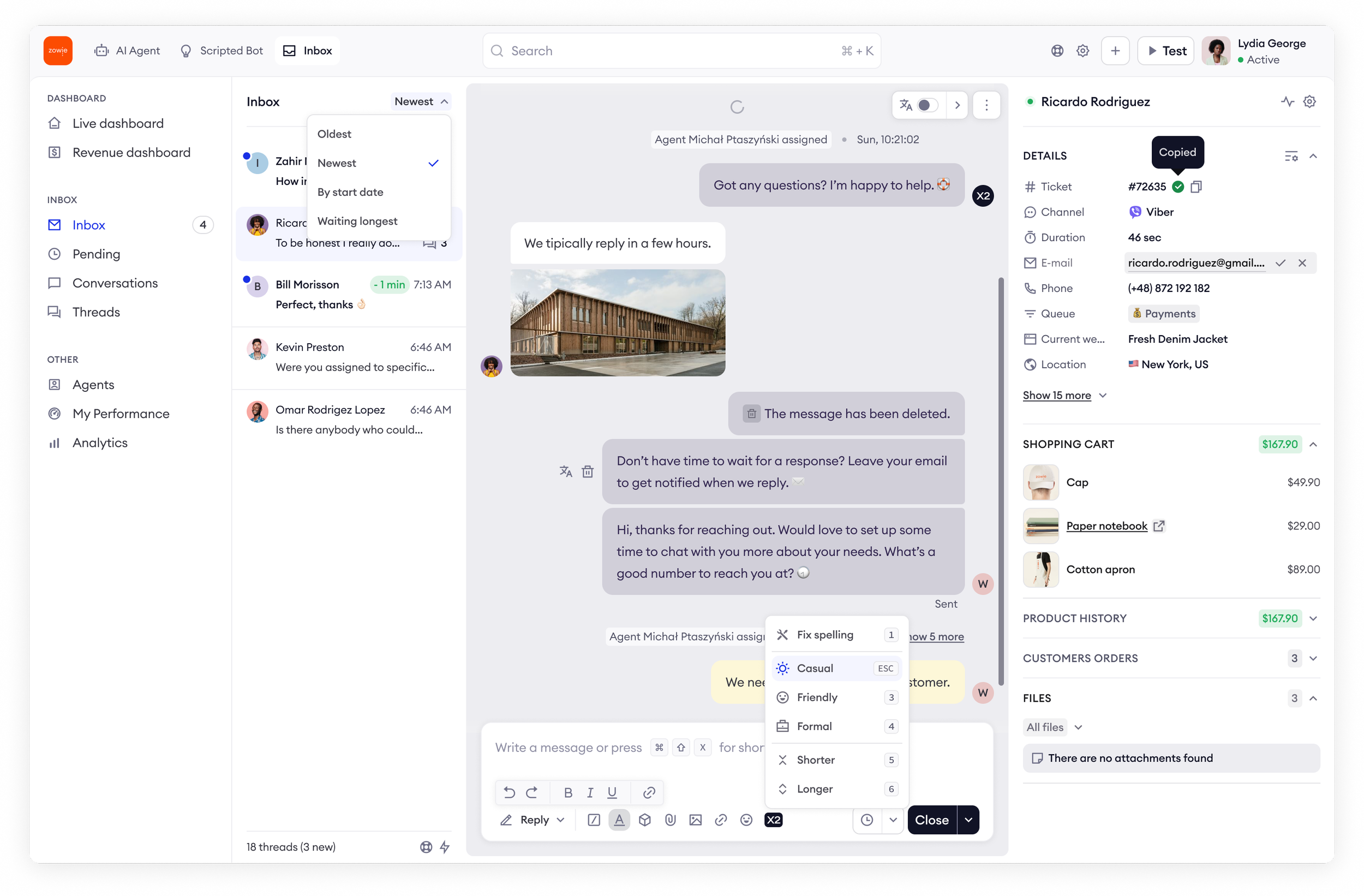 Led the design of a new AI Agent features and built a new Inbox interface from scratch to improve user experience and streamline customer inquiries.