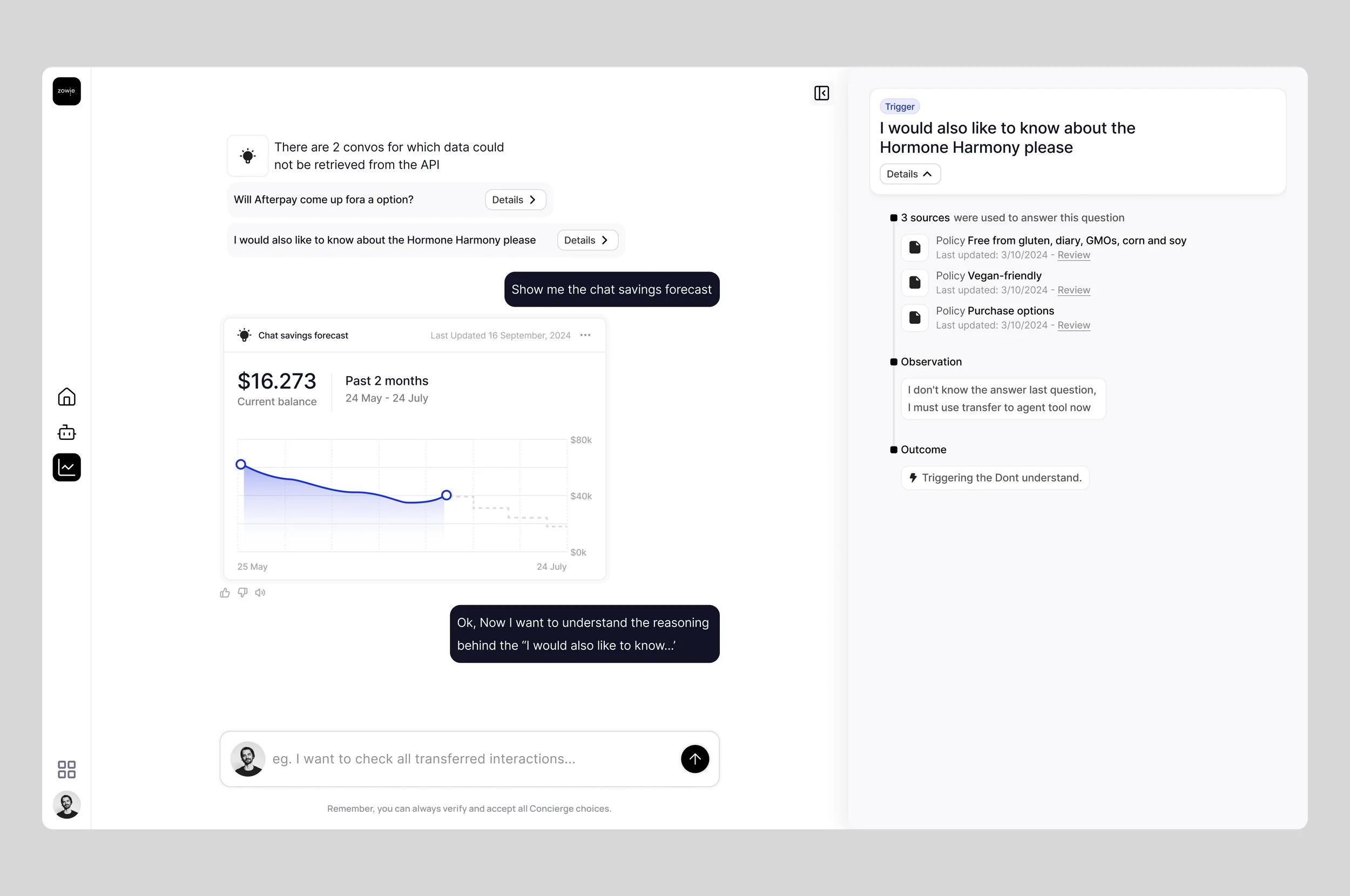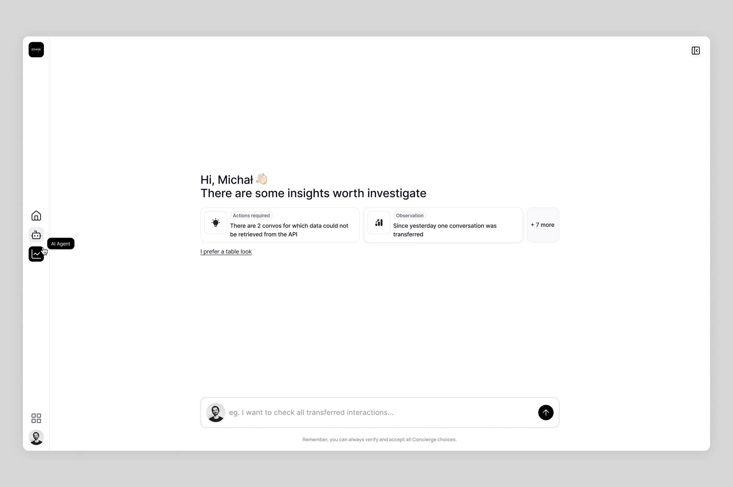 In this project, I explored a path where the user doesn’t rely on a classic SaaS UI. Instead, I proposed a conversational interface where all CTAs are always visible. If the user needs to dive deeper, they can either ask for what they want or switch to a more traditional view.