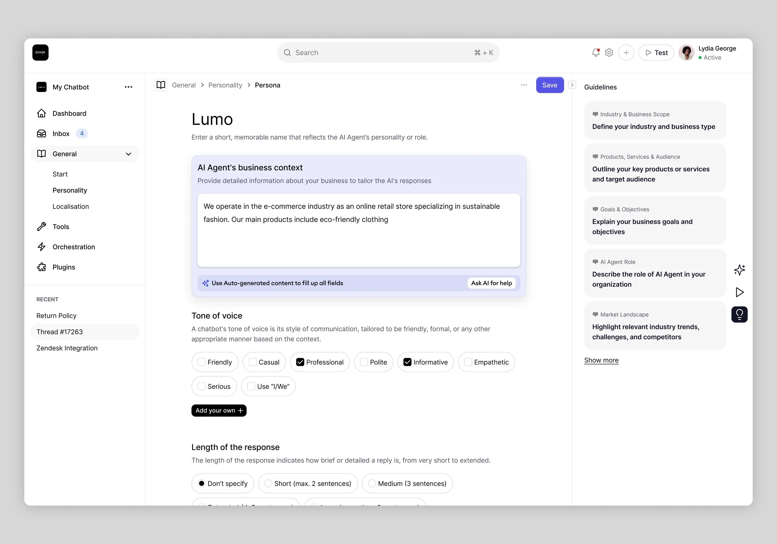 Enable customers to create clear, on-brand AI personas with minimal effort—leading to more natural, consistent AI Agent responses, reduced reliance on human agents, and higher end-user satisfaction across support interactions.